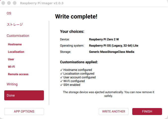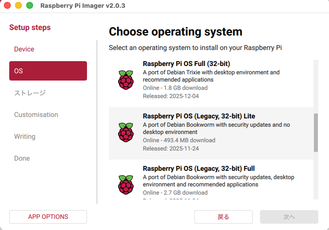 - Zeroは非力なので今回はCUIのみのライト版をインストール