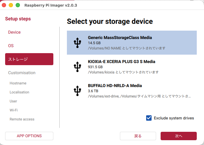 CUIのラズパイZeroなら16・32GBあたりでOKだがGUIで使うようなら32GB以上は必要 - ラズパイのサイトよりSDカードにOSを書き込むためのインストーラーをダウンロード