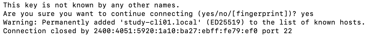 ssh everidea@study-cli01.local ←.localつけるの忘れないで