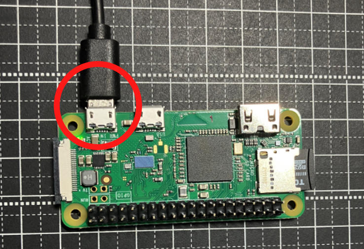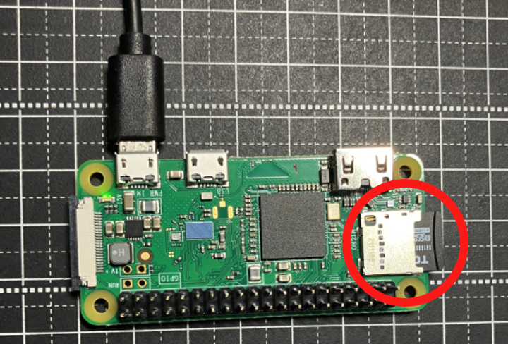 - ラズベリーパイZeroに前回作成したMicroSDカードを挿入